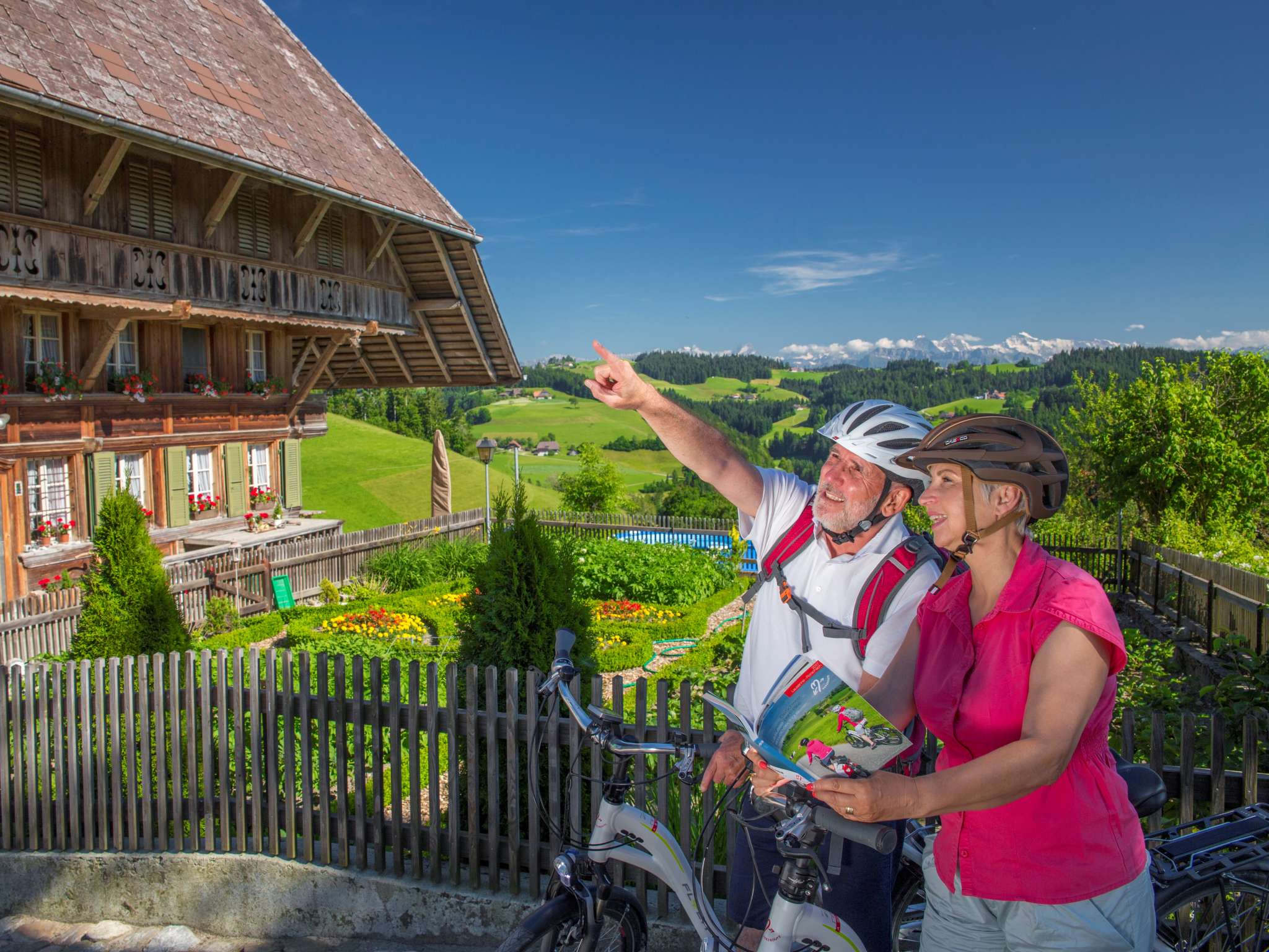 Spätestens in Sumiswald wird das Emmental zum prägenden Erlebnis, das mit zusehends hügeligen Passagen nach unseren Muskeln ruft. Der FLYER meistert die Rampen souverän, und wir geniessen die Ursprünglichkeit dieser reichen Gegend, die sich bis zum Kulminationspunkt der Lüderenalp auf über 1100 Metern steigert. Hier spürt man sie, diese Napf-Kraft, wie sie aus der Landschaft dringt und unsere Sinne verzaubert. Eine epische Abfahrt führt uns nach Langnau, dem stolzen Zentrum und Genussort des Emmentals.