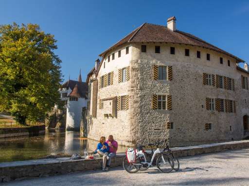 Vom Klosterdorf Eschenbach promeniert man durch sattes Grün in Richtung eines unscheinbar wirkenden Hügels, der sich beim Näherkommen aber stetig in die Höhe reckt. Es ist der Lindenberg, und seine Flanken sind gespickt von Burgen und Schlössern, die alsbald den Weg des Radwandernden kreuzen. Als erstes kommt die Kommende Hohenrain ins Blickfeld, die man mit etwas Muskel- und Batteriekraft erklimmt und beeindruckt umrundet. Auf der nächsten Etage des Längenbergs ist es die magische Ruine Nünegg, die am Wegrand lauert und ihre romantische Grillstelle feilbietet.