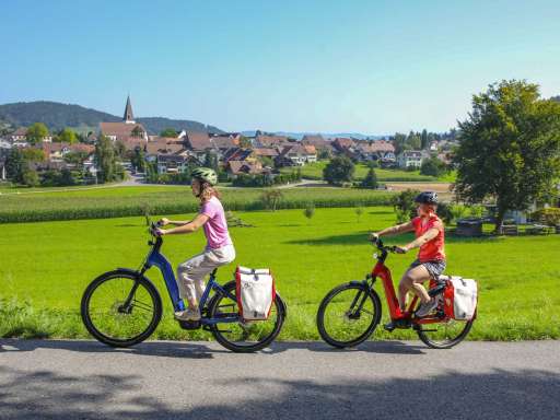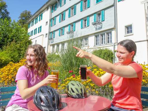 Rikon empfängt mit gurgelnder Töss und grünen Hügeln, in der unsere Strecke auch sogleich verschwindet. Nach ersten Steigungen finden wir uns wieder in einer Bilderbuchlandschaft, die bald einmal von einem Bilderbuchgasthof ergänzt wird: Dem altehrwürdigen «Gyrenbad». Hier wurden früher Pferde gewechselt und heute Akkus geladen; in beiden Fällen begleitet durch einen lauschigen Umtrunk auf der Sonnenterrasse.