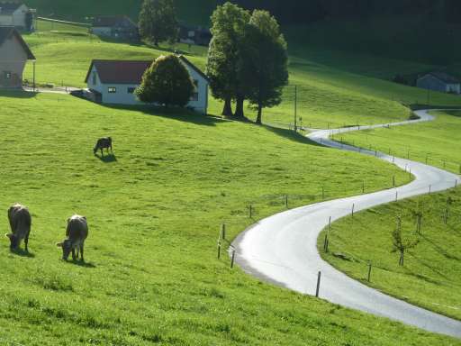 Das im St. Gallischen Kantonsgebiet eingeschlossene Appenzell sieht sich selber als «Fünfliber im Kuhfladen» wohingegen die St. Galler es eher als «Kuhfladen in der grünen Wiese» betrachten. Wir merken auf unserer abenteuerlichen Fahrt, dass wohl beides nicht ganz zutrifft, den Schalk der Appenzeller (und jenen der St. Galler?) aber trefflich beschreibt. Zuerst hebt sich die Strecke auf lauschige Art aus dem Rheintal heraus, um durch die Hintertüre in der Innerrhoder Metropole Appenzell hineinzuführen.