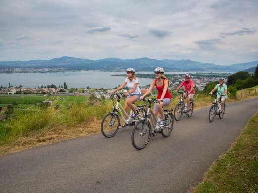 Die Herzroute lässt es sich nicht nehmen, dem Zürichsee ein besonderes Kränzchen zu winden, indem sie sich um den ganzen Obersee herumschlängelt, der in grossartiger und verkehrsfreier Weise sich dem Radreisenden darbietet. Erst mit dem Übertritt in den Kanton Schwyz ändert sich die Szenerie, zuerst mit dem düsteren und bunkergespickten Buechberg, dann mit dem jähen Aufstieg, der uns nach erfolgter Zwischenverpflegung im noblen Lachen oder dem Aussichtspunkt Johannisburg empfängt. Die sich uns entgegenstellenden Höhenlinien sind knackig, werden aber durch die immer imposanter werdende Aussicht auf den Zürichsee mehr als wettgemacht.