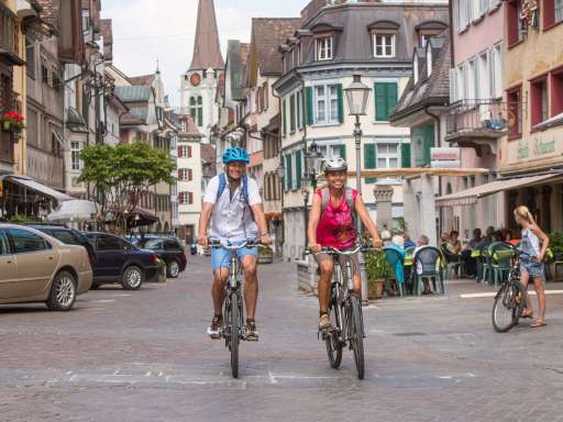 Romanshorn -> Altstätten Auch wenn die Herzroute offiziell erst ab Rorschach beschildert ist, fängt sie in der Regel doch in Romanshorn an, um erst einmal genüsslich dem Bodensee entlang zu führen, vorbei an den prächtigen Obsthainen, durch die römische Stadtgründung Arbon bis zur Hafenstadt Rorschach. Hier nun wird es ernst. Die Hügel sind unübersehbar, und die Herzroute kennt die besten Weg in sie hinein und über sie hinweg.
