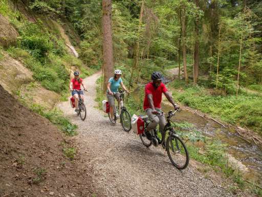 Über Riggisberg und den Aussichtspunkt Bütschelegg gleitet man dem sich stetig öffnenden Westen der Schweiz entgegen, der sich durch eine splendide Weitsicht auf den Jura und das Dreiseenland ankündigt. Die Tour führt durch den eindrücklichen «Grossen Forst» hindurch, ehe sie sich im mittelalterlichen Kleinstädtchen Laupen einfindet, wo man zwischen Schloss und Fluss zu einem entspannenden Schlusstrunk ansetzt.
