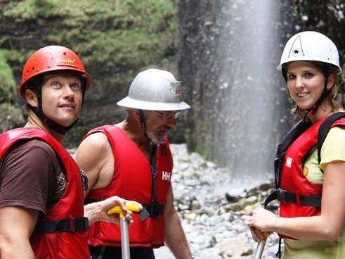 Mit den Booten fahren Sie durch die langen schmalen Becken, bestaunen die bis zu 80 Meter hohen Nagelfluhwände und lassen sich unter den Schleierwasserfällen berieseln. Anschliessend paddeln Sie unter einer gigantischen Naturbrücke durch, wo sich die Felswände berühren. Diese Stelle ist gerade 1.5 Meter breit, die Wassertiefe ca. 6 Meter. Lassen Sie die tiefen Wasserbecken hinter sich und gehen dann zu Fuss, watend oder sogar schwimmend im Emmenbett weiter, bis zum Schluchtende.