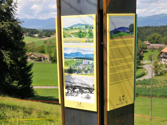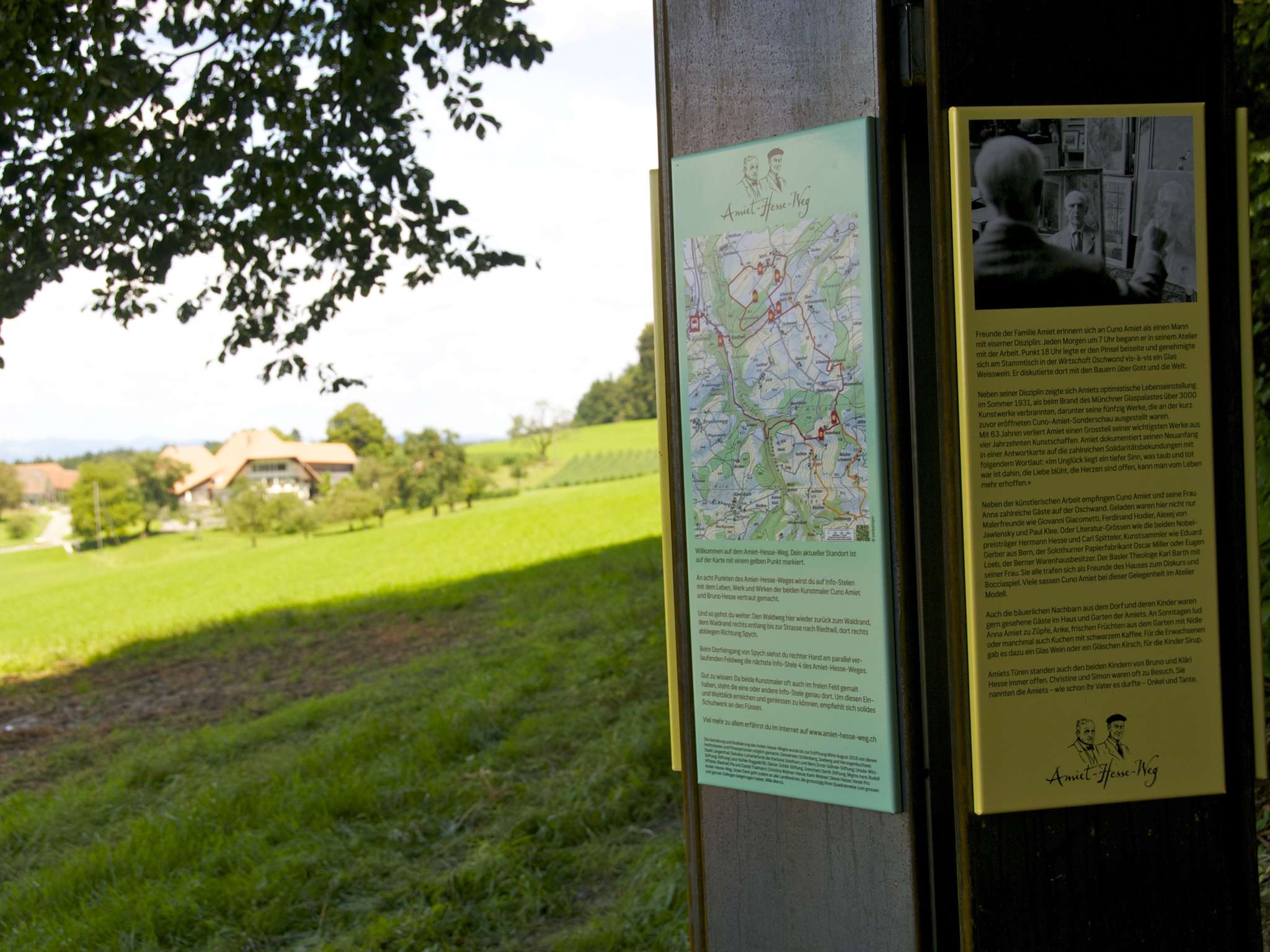 Obacht! Wer in der Nähe von Ochlenberg – vom entsprechenden Wegweiser verführt – 4 Kilometer Richtung Oschwand fährt, gewinnt: Cuno Amiet lebte und malte hier. Dichter Hermann Hesse gab 1920 Sohn Bruno bei Amiets in Pflege. An acht Originalschauplätzen erzählen Text- und Bildtafeln am Amiet-Hesse-Weg vom Leben und Werk der beiden Künstler. Ihre Bilder öffnen den Blick in die Landschaft, in der man steht.