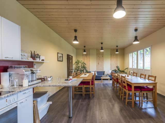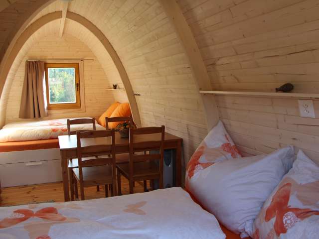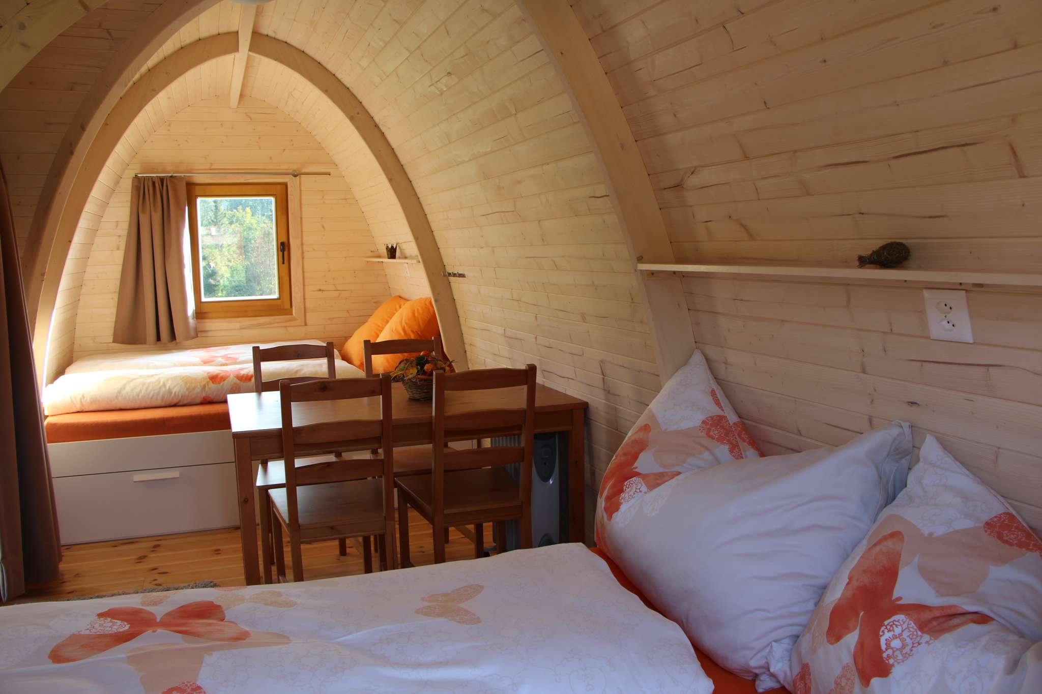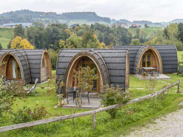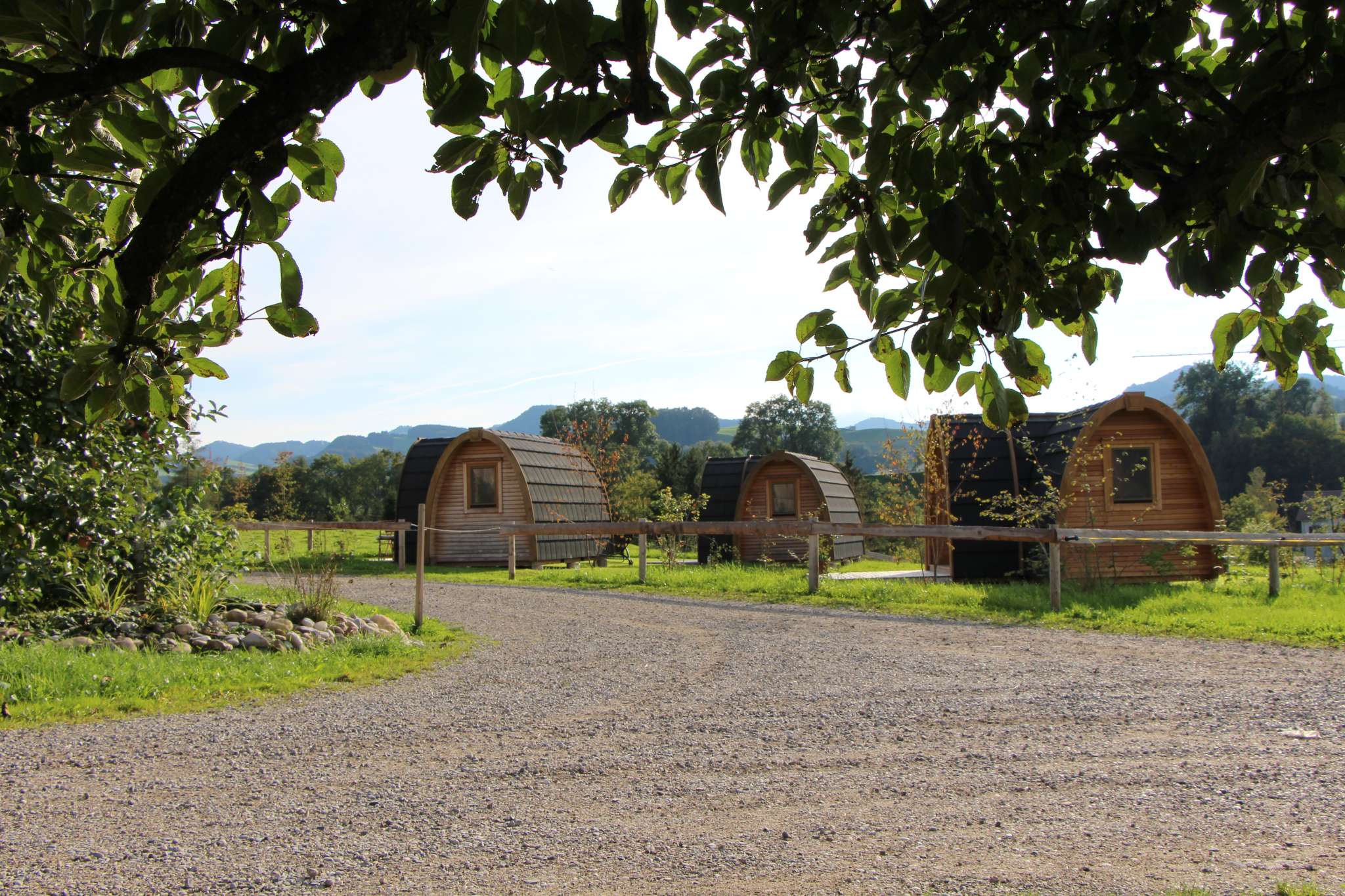 Eine Übernachtung im heimeligen Holziglu wird für Sie eine angenehme Überraschung sein! Ein naturnahes Erlebnis, luxuriös einfach. Geniessen Sie die Ruhe und wohlverdiente Rast in einem unserer drei liebevoll eingerichteten Podhouses. Die Liegestühle stehen schon bereit! Im gemütlichen Aufenthaltsraum (mit Selbstversorgerküche) verwöhnen wir Sie gerne mit einem leckeren und gesunden «Hofgenuss-Zmorge» mit hofeigenen Produkten von unserem Biohof. Sie finden uns direkt an der Veloroute 95.