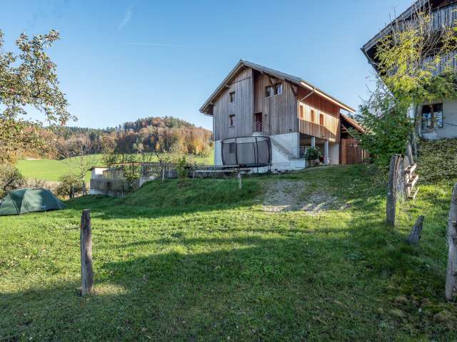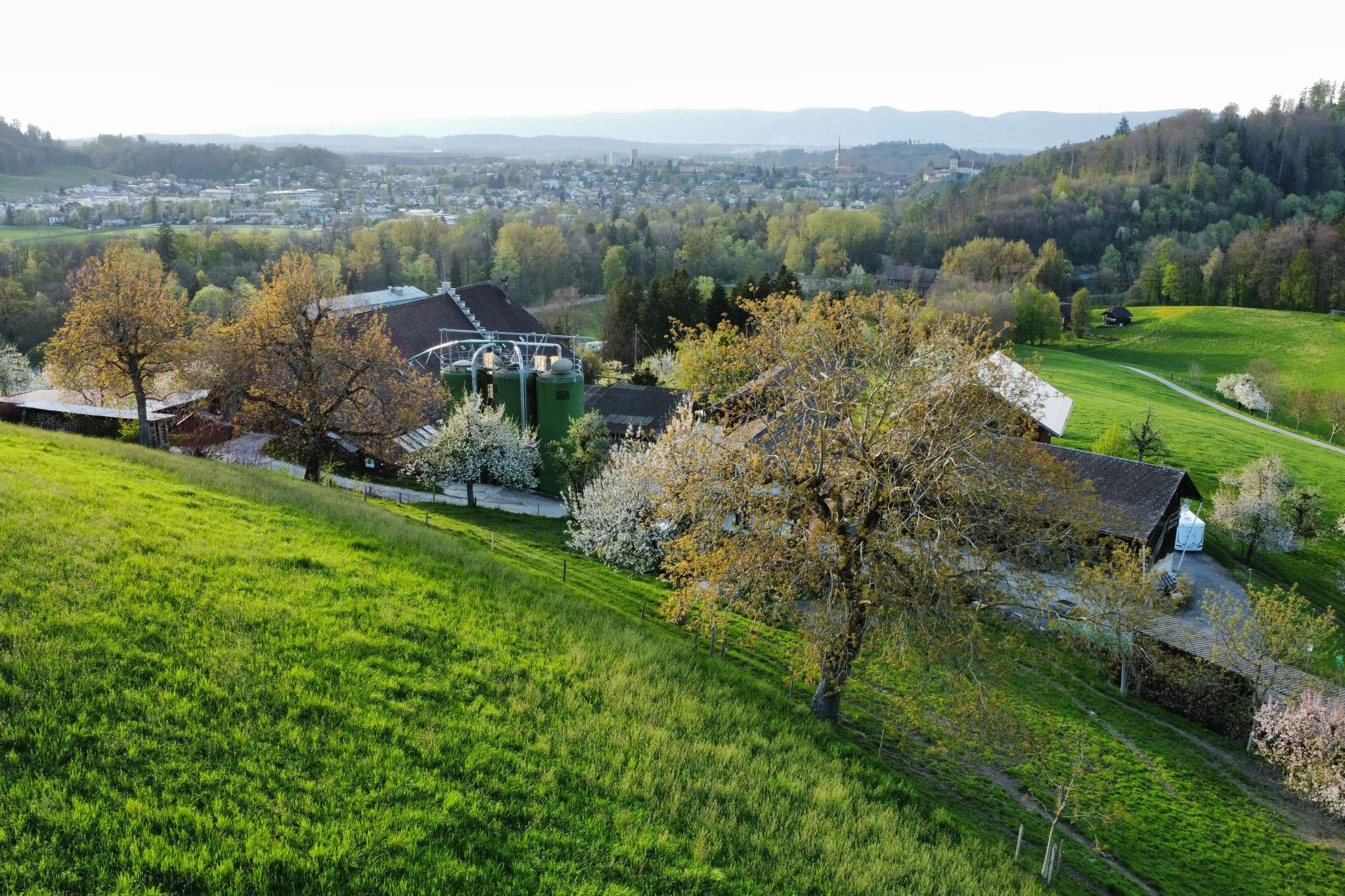 Der aktive Bauernhof liegt auf einer kleinen Anhöhe ausserhalb von Burgdorf. Von hier aus hat es eine wunderschöne Aussicht auf die Stadt mit dem Schloss bis hin zum Jura.