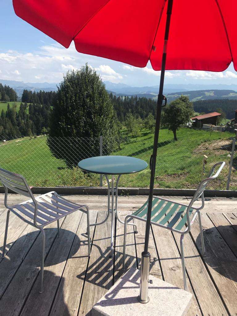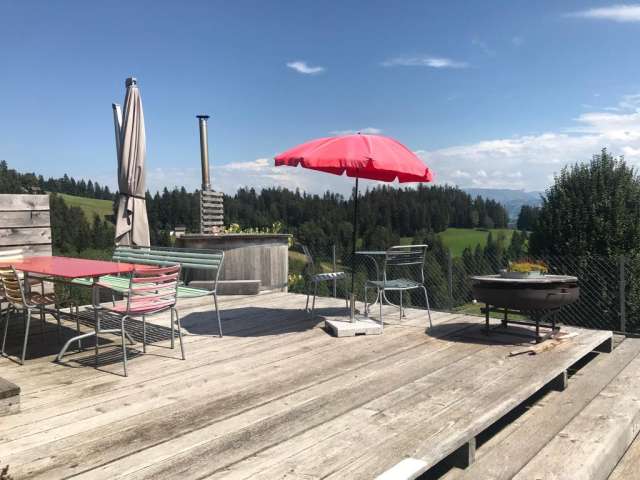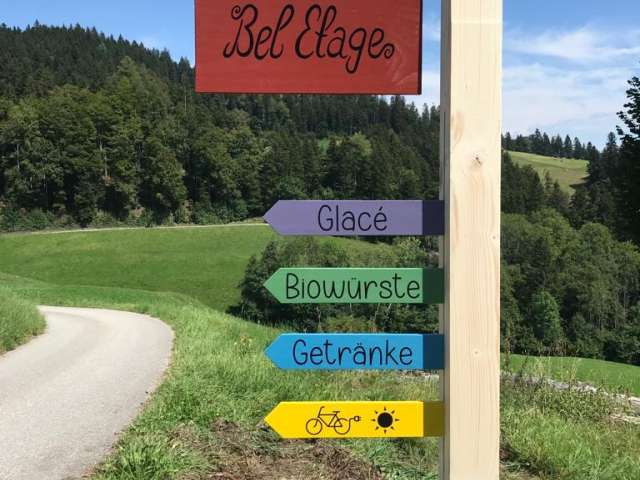 Zwischen Biglen und Signau erwartet dich in der Gemeinde Oberthal die Aussichtsterrasse BEL ETAGE. Sie liegt direkt an der Gotthelf - Route Nummer 699.