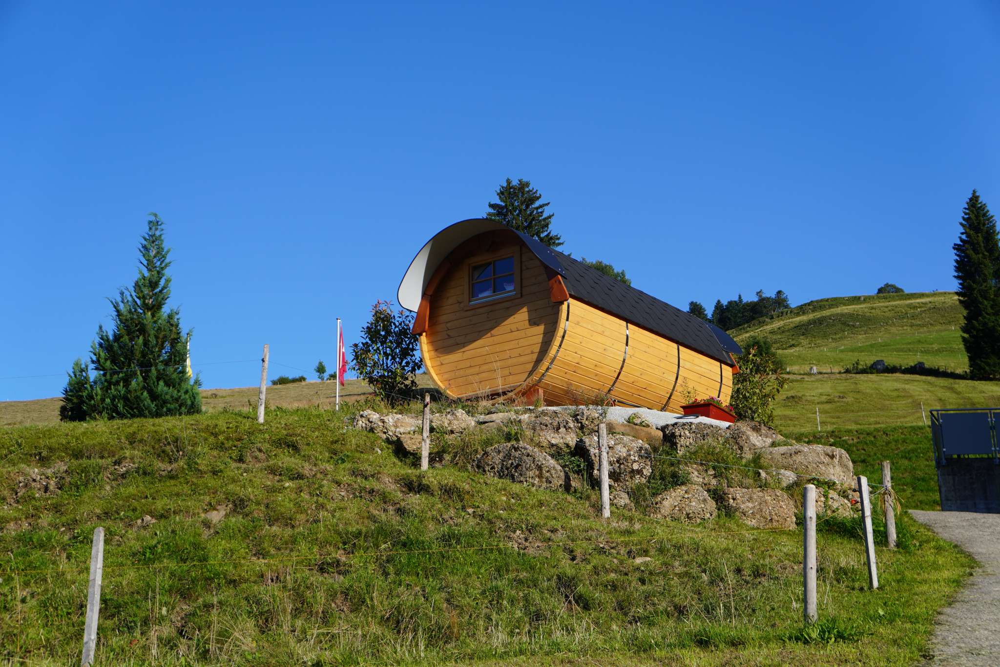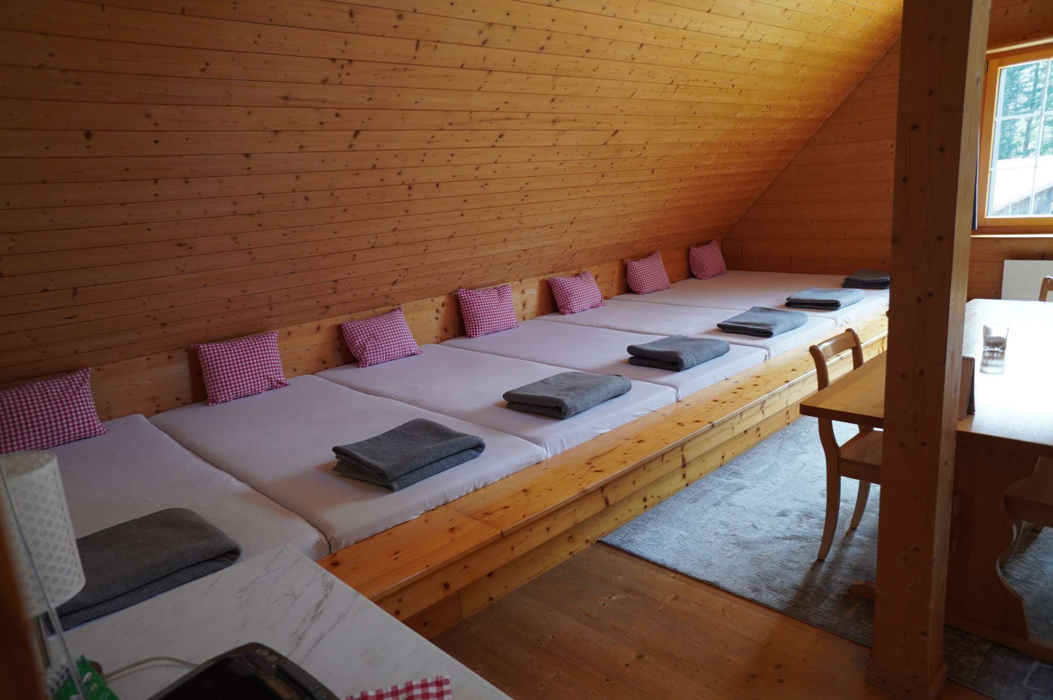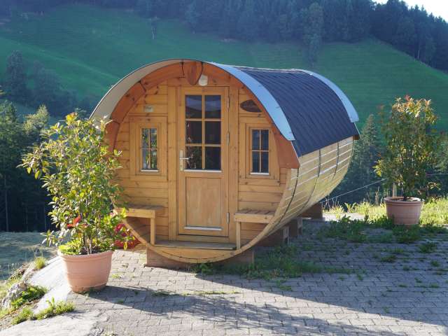 Massenlager, Einer- oder Doppelzimmer, 2,5-Zimmer-Wohnung oder im Holzfass.