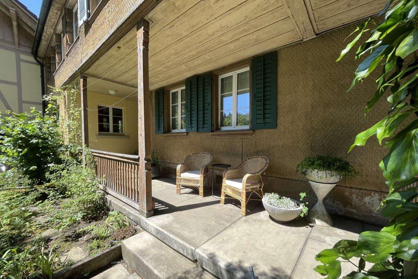 In Langnau i. E. in unmittelbarer Nähe vom Bahnhof. Das Dorf Langnau ist umgeben von sanften Hügeln, grünen Wiesen und traditionellen Holzhäusern.