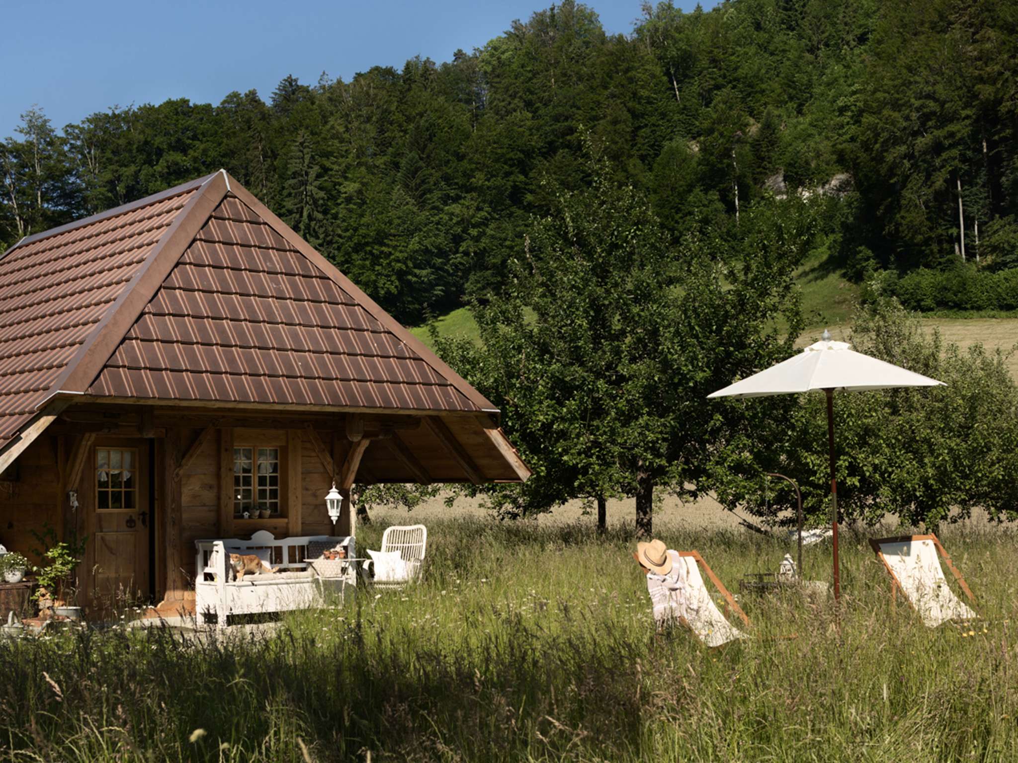 Erholen Sie sich im ruhig gelegenen «Weideschürli» (2 Pers.) unter alten Obstbäumen oder gönnen Sie sich eine Übernachtung im schmucken «Ofehüsli» (bis 4 Pers.).