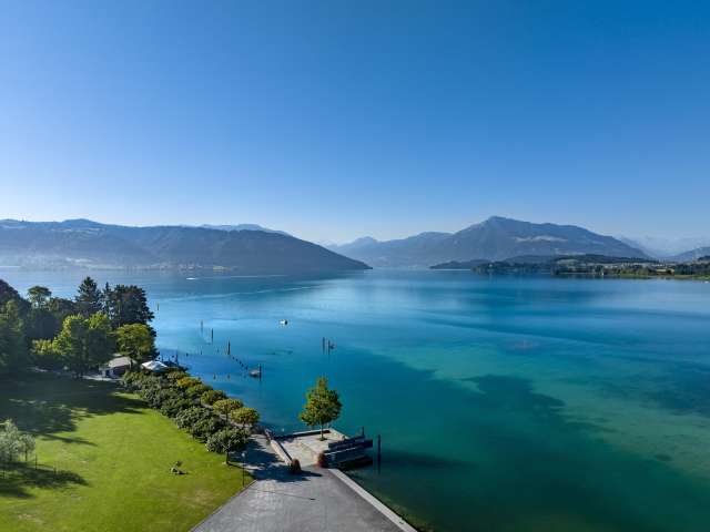 Die herrlichen Parkanlagen direkt am See laden Sie zu einer Rast ein, im Hirsgarten, im Villettepark oder in einem der beiden frei zugänglichen Strandbädern. Die Gemeinde Cham zählt über 18'000 EinwohnerInnen. Besuchen Sie das Ortszentrum, das sich von der stattlichen Kirche St. Jakob bis zum Einkaufszentrum Neudorf zieht.