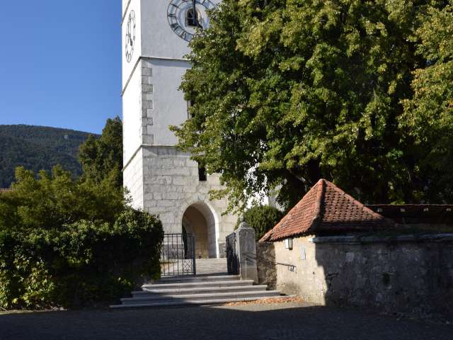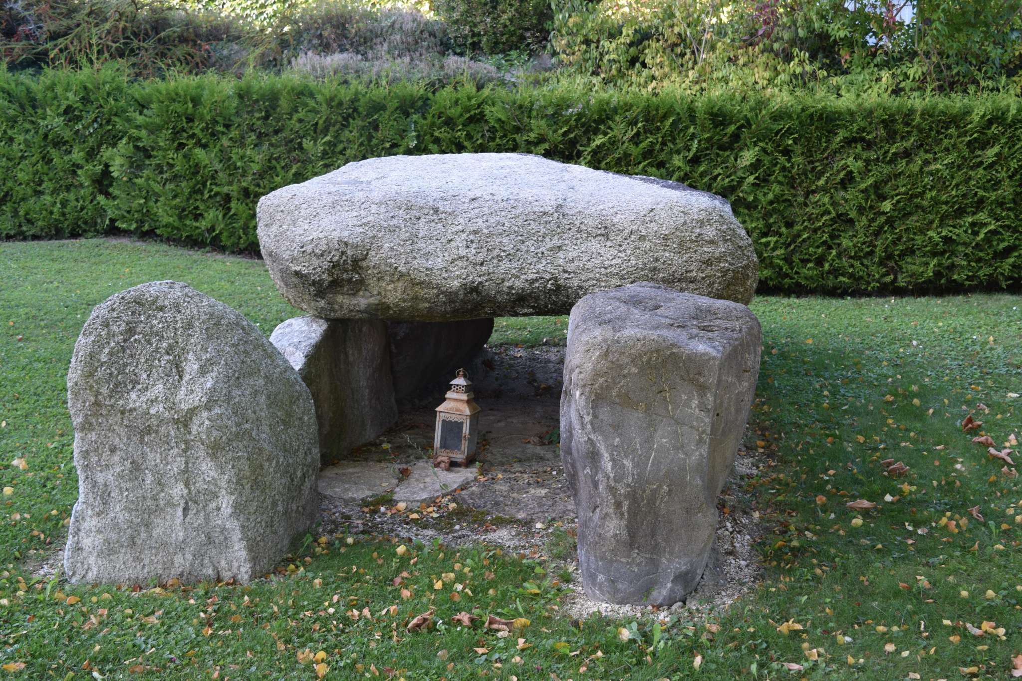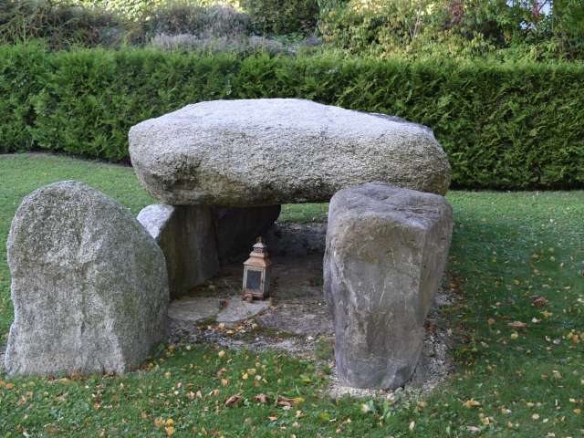 Das Dolmengrab ist öffentlich zugänglich auf dem Friedhof Oberbipp
