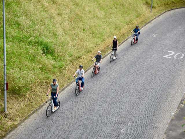 Das Elektrotrotti «Hugo Bike» ist Fahrrad und Motorrad zugleich. Es verfügt über einen 500-Watt-Motor und erreicht eine Maximalgeschwindigkeit von 25 km/h. Pro Tag können Sie mit dem E-Trotti maximal 40 km zurücklegen. Es besteht keine Helmpflicht, das Tragen eines Velohelms wird jedoch empfohlen. Bringen Sie Ihren eigenen Helm mit oder mieten Sie einen Helm zusammen mit dem Elektrotrotti.
