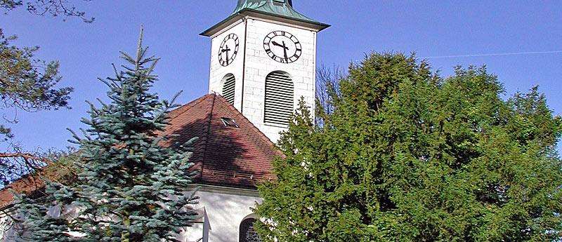 Das älteste Gotteshaus dürfte, vermutlich an derselben Stelle und auf den Fundamenten einer römischen Villa errichtet, in das 10. Jahrhundert zurückgehen (erste Erwähnung 1197). Die heutige Kirche (dritte Kirche) wurde 1677 vom berühmten Berner Münsterwerkmeister Abraham Dünz erbaut.