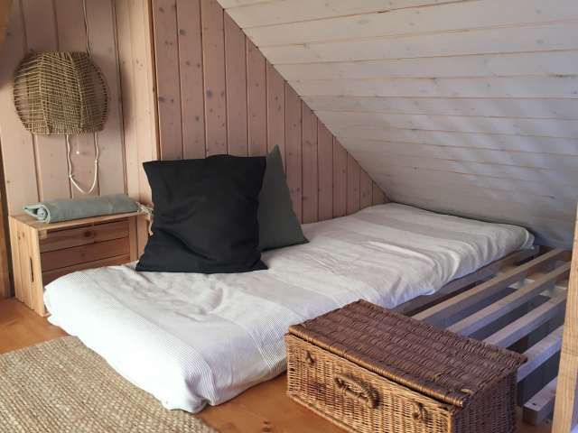 Entdecken Sie die beiden originellen Zimmer. Sie verbinden traditionelle, einfache Bauweise mit modernen Elementen und eignen sich für zwei bis vier (max. sechs) Personen. Die Zimmer weisen den Standard einer Jugendherberge auf. Sie verfügen über eine Teeküche und sind über eine steile Innentreppe mit der Nasszelle verbunden. Dusche und WC erreicht man bequem auch über eine gedeckte Aussentreppe.