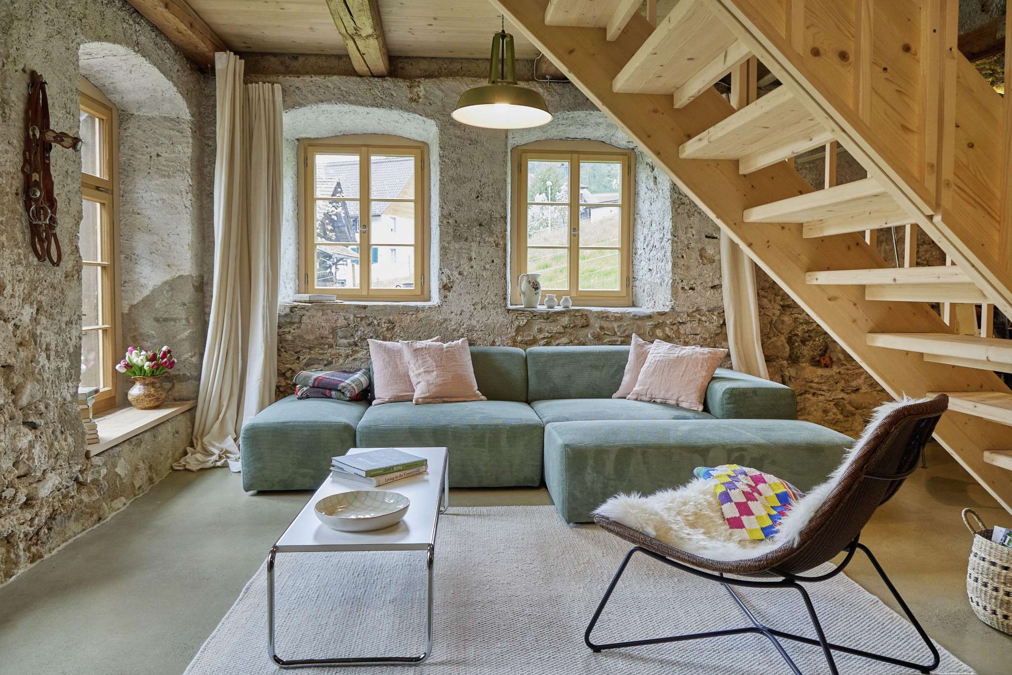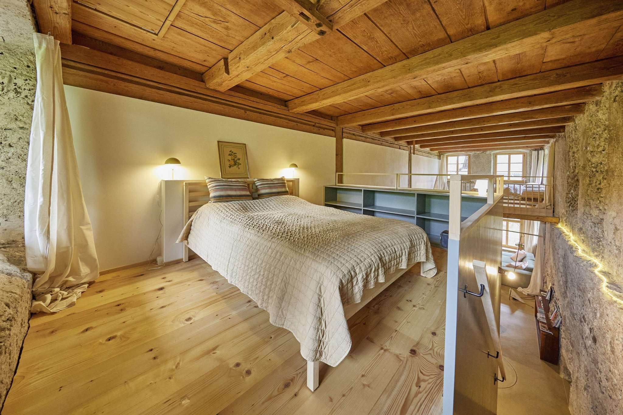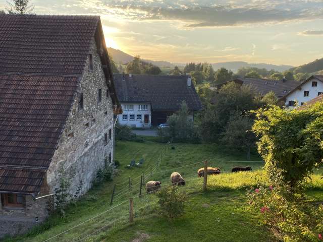 Übernachten Sie in unserer grosszügigen Loft-Ferienwohnung in der Alten Mühle Schalchen. Der stilvoll ausgebaute ehemalige Mühleraum verbindet Geschichte mit modernem Komfort und viel Charme. Hohe Räume und liebevolle Details schaffen eine besondere Atmosphäre. Die Wohnung bietet Platz für bis zu vier Personen, verfügt über einen eigenen Eingang und einen privaten Garten. Ideal als erholsamer Zwischenhalt auf der Herzroute oder für entspannte Tage im Grünen.