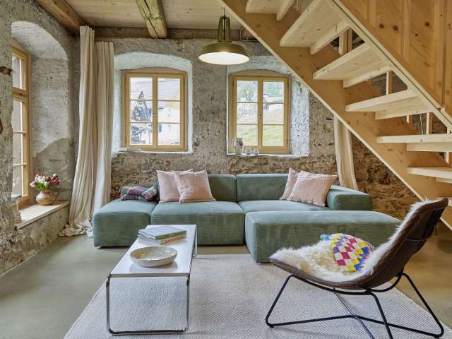 Grosszügiges Loft in denkmalgeschützter 300 Jahre alten Mühle. Das Loft bietet Platz für 4 Personen, einen eigenen Eingang & Garten.