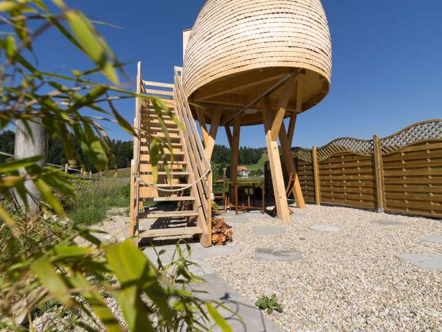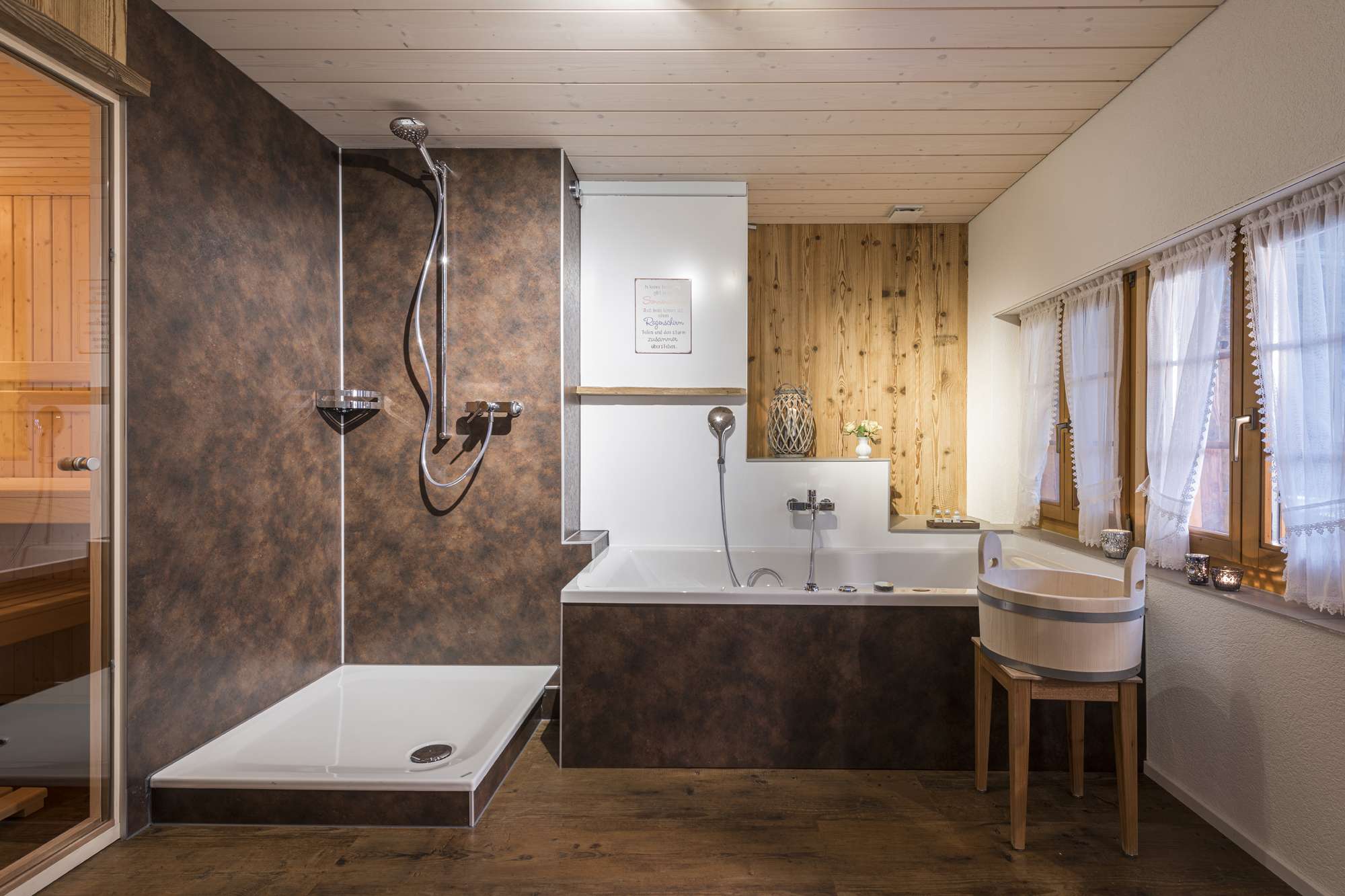 Die Velos können im abschliessbaren Veloschöpfli versorgt werden. Anschliessend geniessen Sie eine wohltuende Dusche in einem