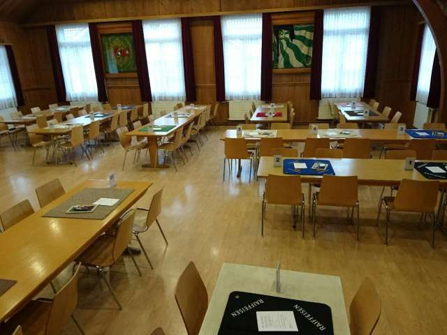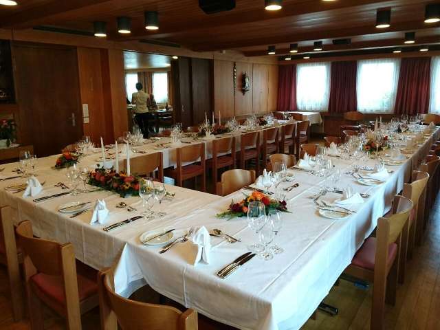 Der Saal für 200 Personen, das Speisesääli für 50 Personen, das Cheminéezimmer für 30 Personen und die heimelige Gaststube, eignen sich sehr gut für Hochzeits-, Geschäfts- und Familienanlässe oder zum gemütlichen Verweilen im Freundeskreis. Der gepflegten Gewölbekeller passt ideal für ein Apéritif.