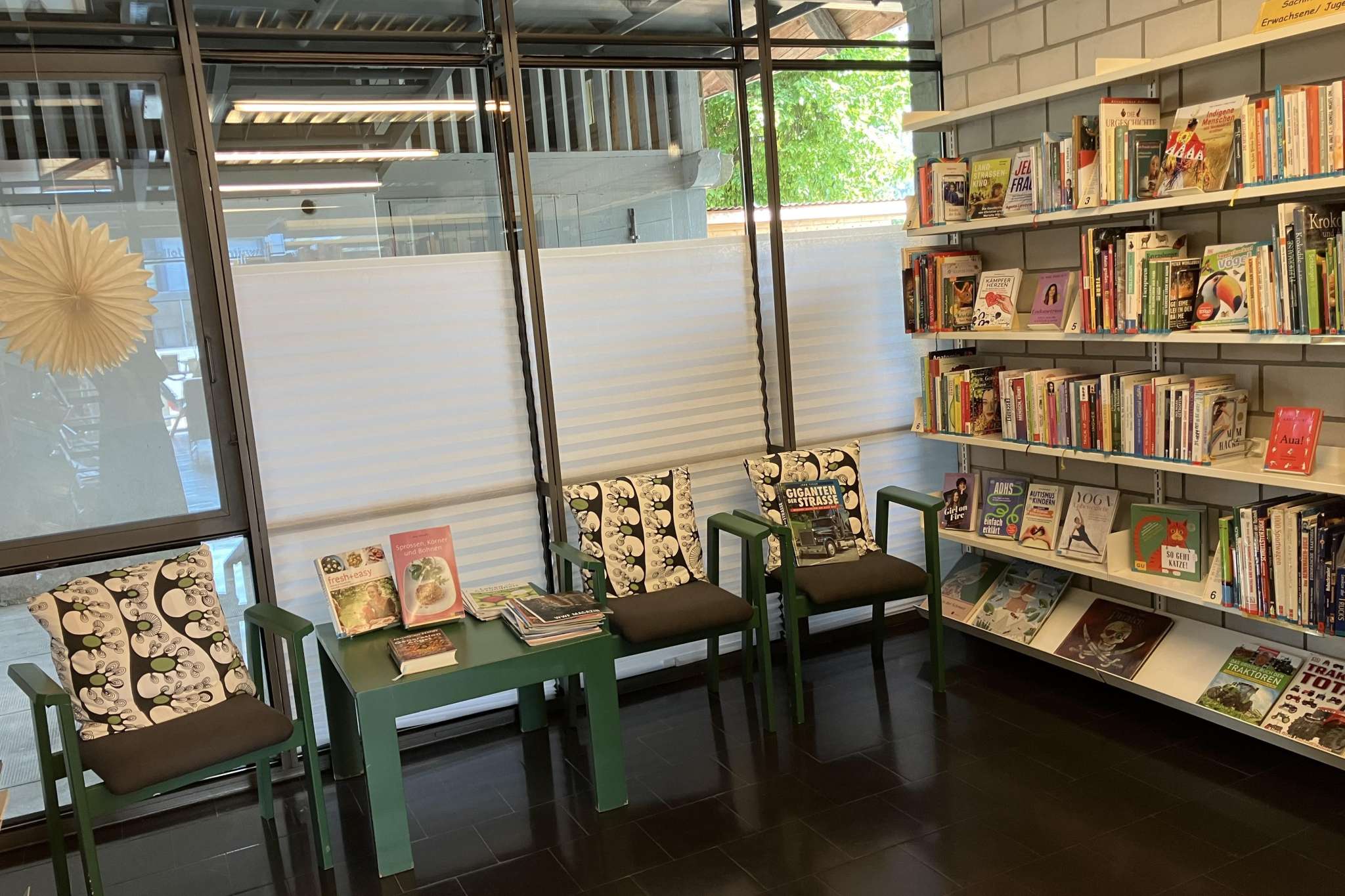 Nebst dem vielfältigen und aktuellen Medienangebot, finden Sie auch eine gemütliche Kaffeeecke, welche zum stöbern und verweilen einlädt. Die Bibliothek ist ein Treffpunkt für Jung und Alt.