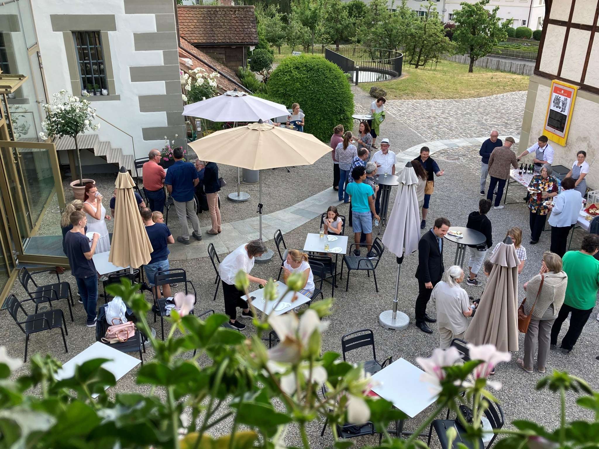 Zum Bistro Bitzius gehört auch das lauschige Höfli zwischen Pfrundscheune, Gotthelf Zentrum und Spycher. Auch hier sind Sie während den regulären Öffnungszeiten herzlich eingeladen zu einem Kaffee, einem Mineralwasser - oder auch zu einem Bier aus einheimischer Produktion.