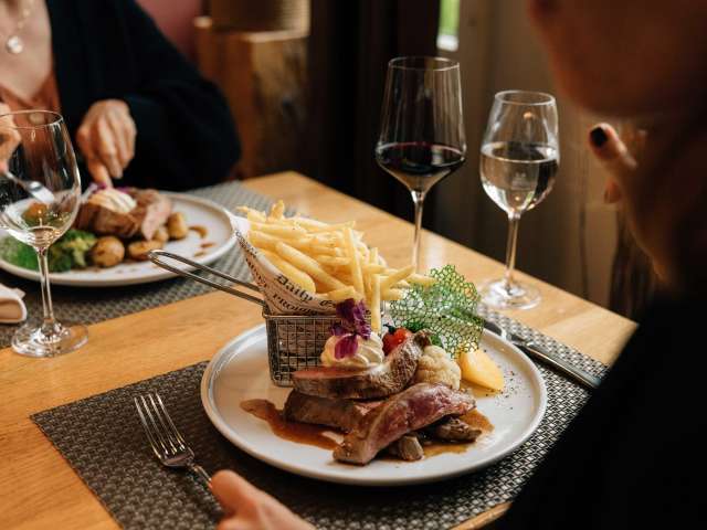 Abends auf der sonnigen Aareterrasse lässt es sich die müden Beine strecken, ein kühles Getränk geniessen & den Tag mit einem Bikermenu ausklingen. Somit steht einem weiteren einzigartigen Ausflug auf zwei Rädern nichts im Weg!