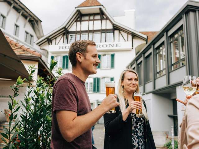 Nach einer erholsamen Nacht in einem der charmanten Zimmer des Hotel Krone Thun, starten Sie aus dem Herzen der Altstadt in einen abenteuerreichen Tag.