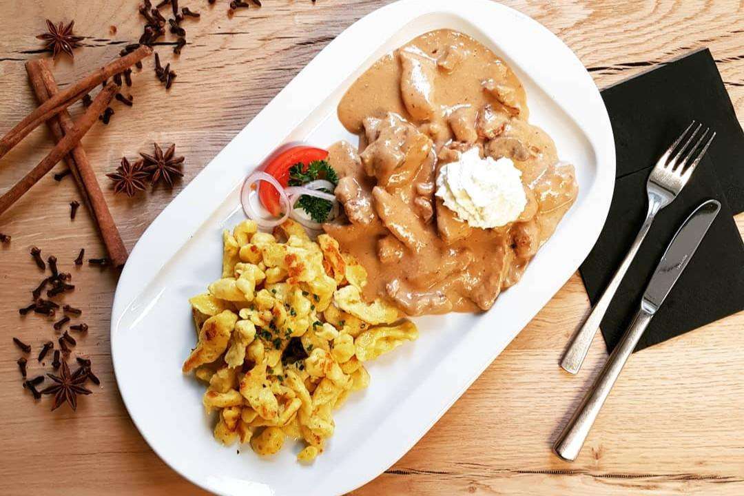 Das Dorf-Hotel mit 15 Zimmern und reichhaltigen Speisen.