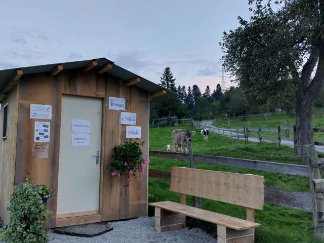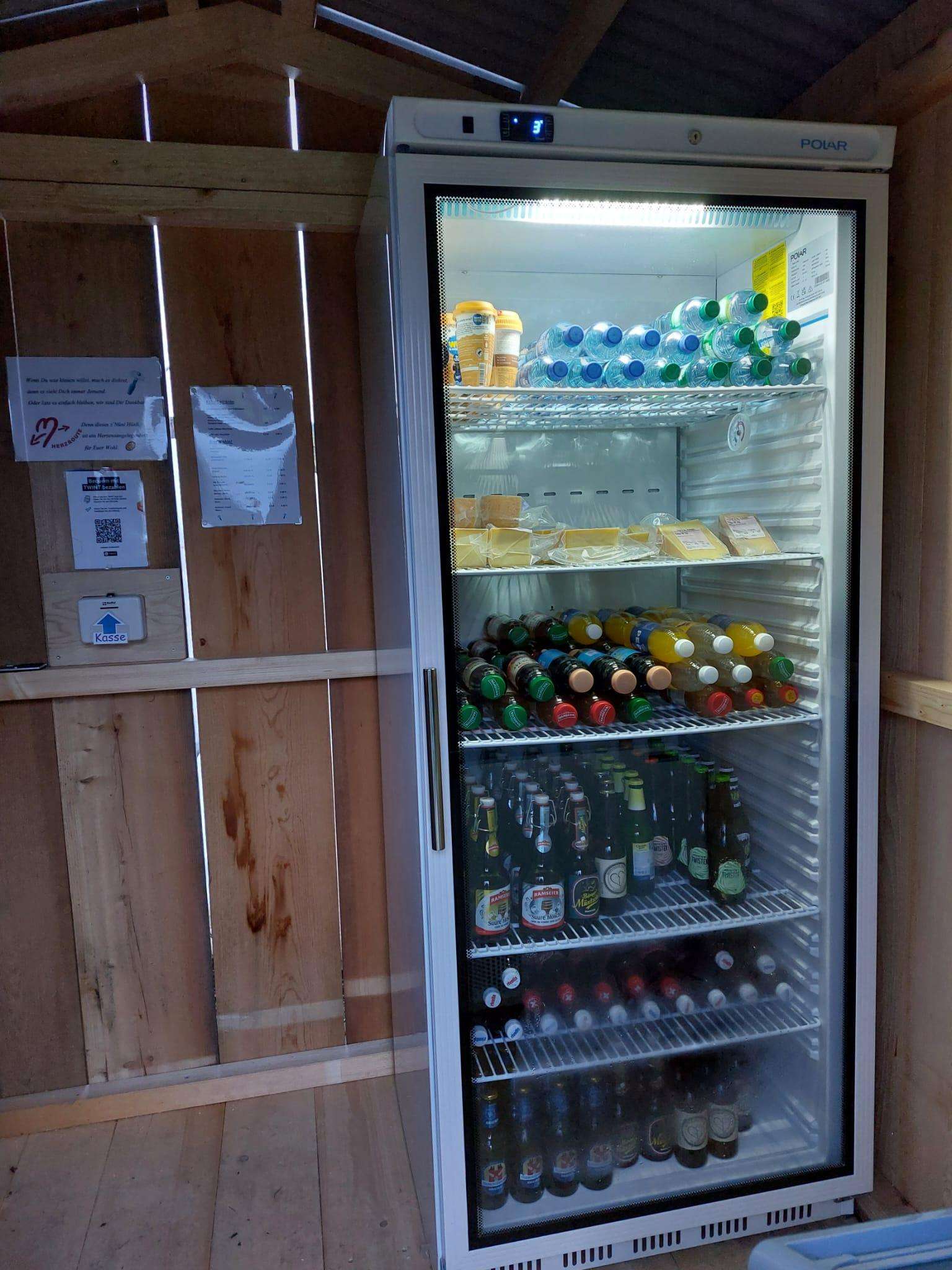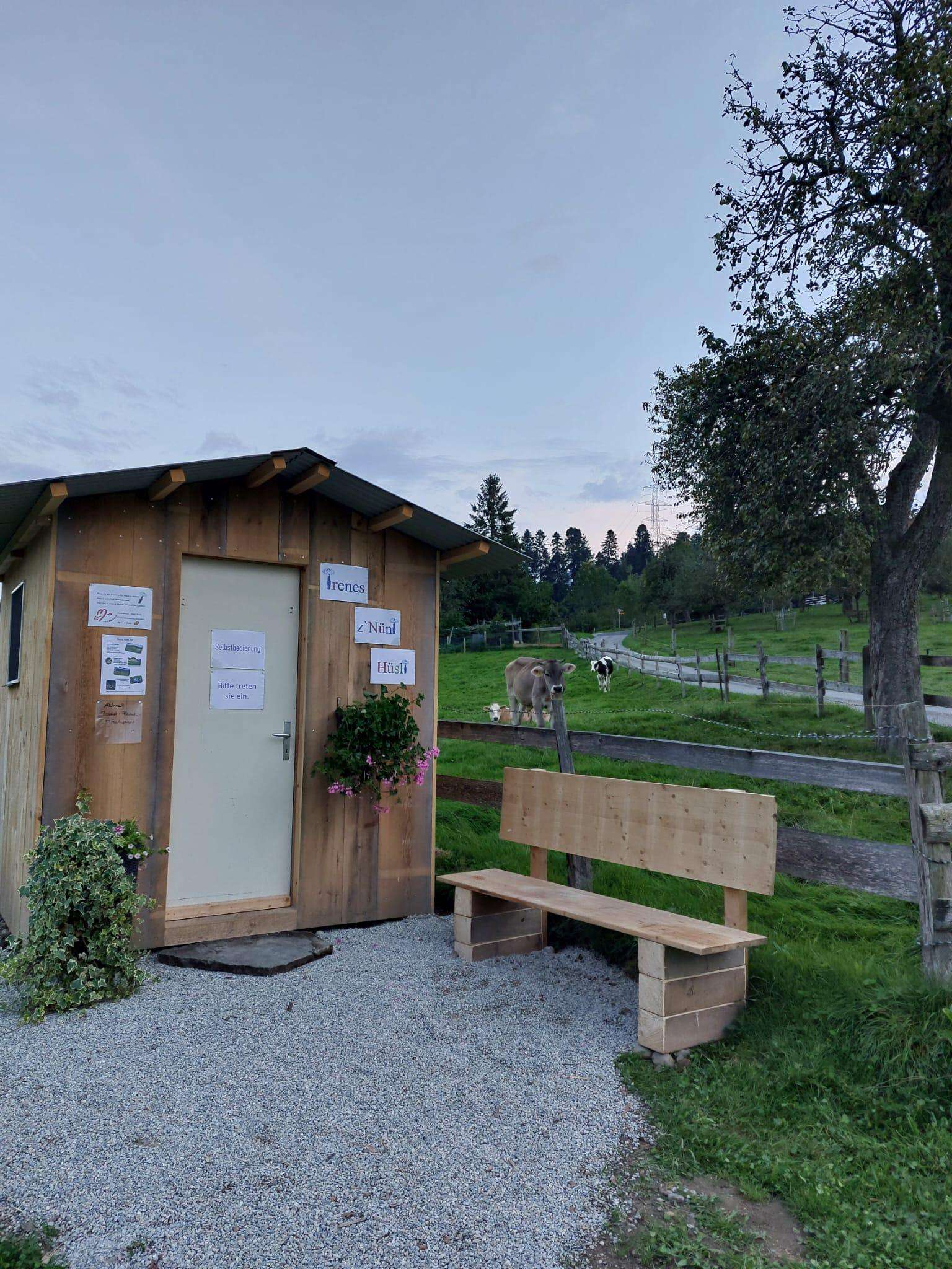 Das Hüsli ist täglich geöffnet (Selbstbedienung) und bietet die Möglichkeit sich zu stärken mit Getränken, Glace, Snacks, Alpkäse, usw.