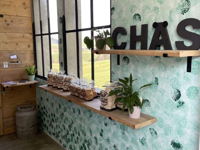 Just dort, wo die Strecke am schönsten ist, gelangt man zu einer einsamen Käserei. Diese liegt auf einem Hügelsporn zwischen Oberthal und Signau. Hier fabriziert die Familie Bähler den würzig feinen Le Gruyère AOP - was eine Seltenheit ist im Emmental. Das Haus bietet einen kleinen Laden. Tische und Liegestühle im Garten dürfen benutzt werden.