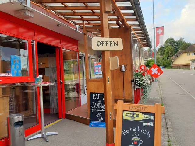 Ob mit Rucksack, Bike oder auf der Durchfahrt – machen Sie eine Pause und geniessen Sie einen feinen Kaffee aus unserer vielfältigen Auswahl. Dazu vielleicht ein Gipfeli, Sandwich oder Nussgipfel?