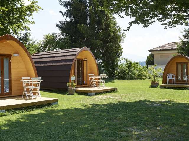 Selbstbedienungsrestaurant mit Terrasse. Strandbad mit Sandstrand. Camping mit Bungalow und Pod.