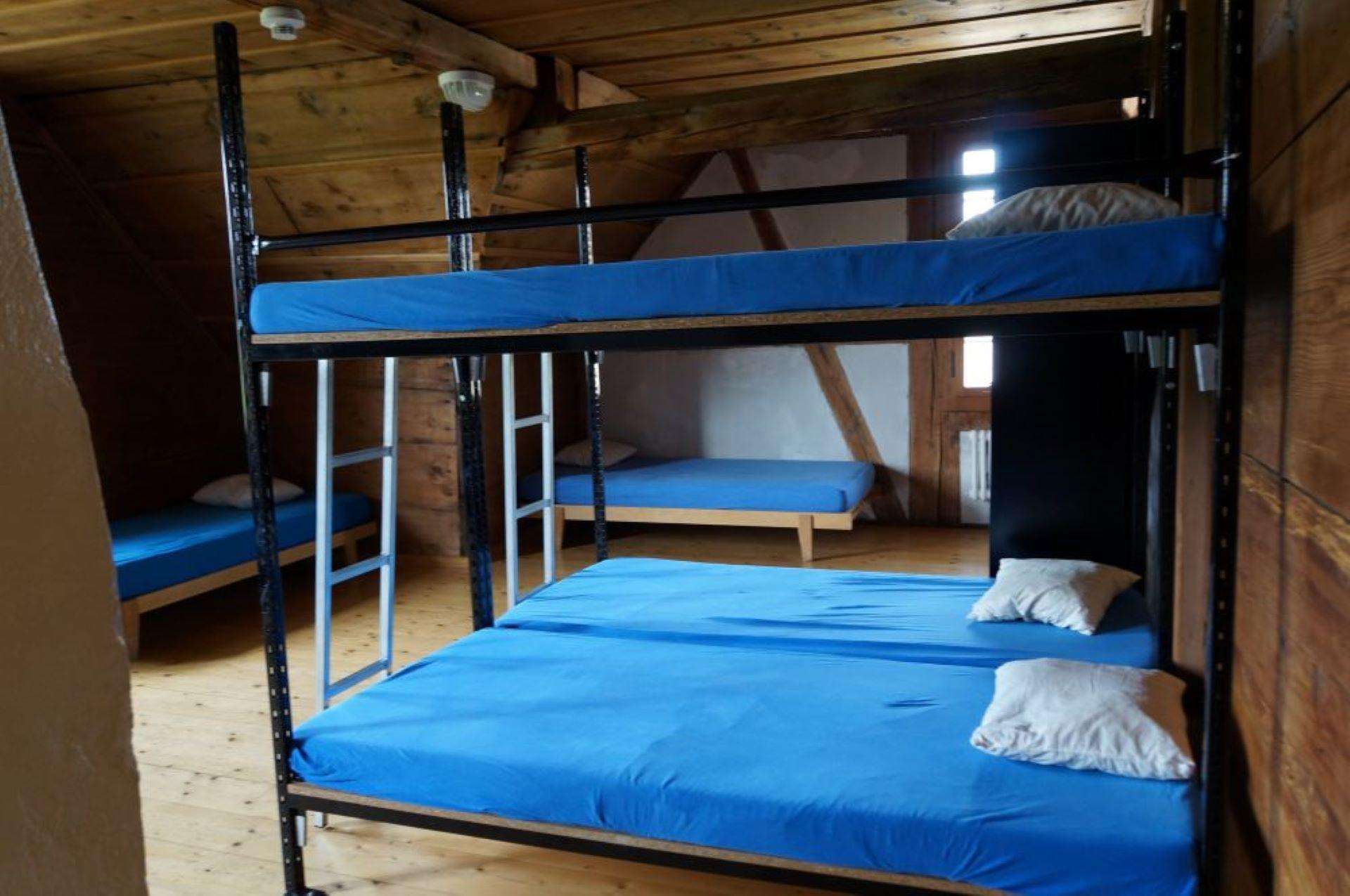 Die 32 Schlafplätze teilen sich auf in 2 x 2; 1 x 4; 3 x 8 Betten je Zimmer. Wolldecken und Kopfkissen sind vorhanden. Es kann im eigenen Schlafsack oder im frisch bezogenen Duvet übernachtet werden. Es eignet sich für Gross- aber auch Kleingruppen sowie als Ferienwohnung.