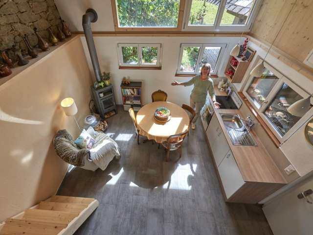 Vom Schlafzimmer aus geniessen Gäste einen tollen Blick auf die königlichen Pferde in ihrem Auslauf. Zusätzlich ist es möglich sich im bequemen Sessel vor dem Kaminfeuer zu erholen. Der Hof ist ein perfekter Ort um sich allein, mit Partner oder der Familie eine Auszeit zu gönnen. Das heimelige Tiny Studio bietet platz für 4 Personen. Es gibt ein Kaminofen, Dusche und auch eine Kochgelegenheit.