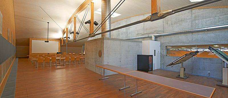 Im Dachstock vom Werk I der Hector Egger Holzbau AG kann der moderne Medienraum (200 m2) als Seminarraum gemietet werden. Speziell: der Raum bietet mit den Fenstern auf der einen Seite helles Tageslicht und auf der anderen Seiten lassen die Fenster Sicht auf die Produktion der Hector Egger Holzbau AG zu.