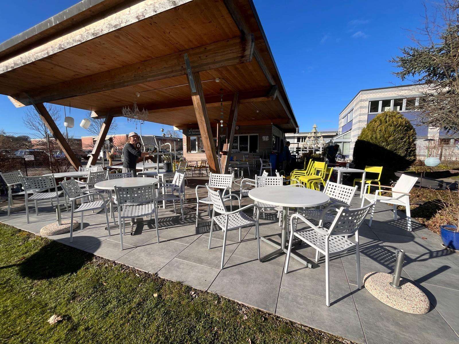 Im Bistro werden unter freiem Himmel und einem Dach Snacks (Pizze, Chnoblibrote, Flammkuchen, Hot Dogs usw.) sowie eine breite Getränkepalette angeboten. Zusätzlich gibt es einen Gasgrill und Festgarnituren mit Tischen und Bänken. Für die Grillbenutzung werden 40 Franken berechnet.