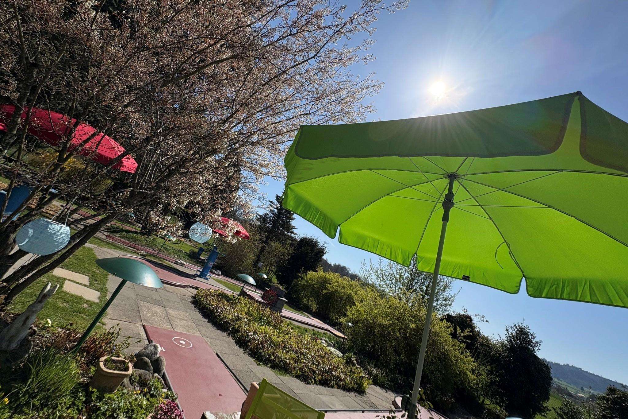«Guet Loch» Mit 18 gepflegten Bahnen und einem gemütlichen Bistro ist der Platz der perfekte Treffpunkt für Minigolffans aus der ganzen Schweiz. Ob Singles, frischverliebte Paare, Vereine, Firmen oder Schulklassen – im grünen Paradiisli erlebt jeder entspannende Stunden unter freiem Himmel. Die liebevoll gestaltete Umgebung, die freundlichen Gastgeber und das reichhaltige Angebot an Speisen und Getränken machen jeden Besuch zu einem besonderen Erlebnis.