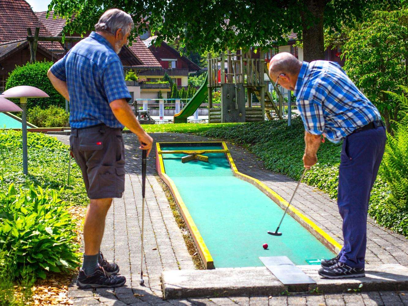 Die perfekt gepflegte Anlage lädt Jung und Alt zu Musse, Genuss und Erholung ein. Auch der erfahrenste Spieler kann auf den 18 anspruchsvollen Hindernissen noch seine Herausforderungen finden. Die originale Schweden-Wettkampfbahn aus Holz, Eternit und Filz, von denen es in der Schweiz nur wenige gibt, ist dabei eine ganz besondere Erfahrung und lässt so manches Minigolferherz höher schlagen.