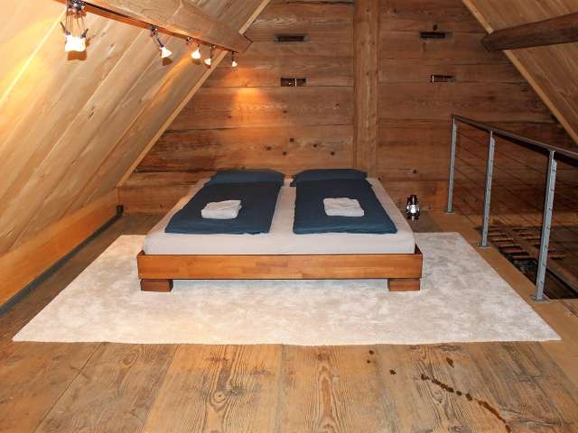 Der Spycher eignet sich zum Übernachten für zwei Erwachsene und zwei Kinder ab ca. 6-8 Jahren. Die Treppen innerhalb des Spychers sind sehr steil und stellen Sturzgefahren dar. Der Spycher ist daher für Kleinkinder eher ungeeignet. Was erhalten werden konnte, wurde bewahrt und ist Modern und hell ausgeleuchtet. Da der Spycher nicht isoliert, steht eine kleine Elektro-Heizung und ein Ventilator zur Verfügung. Im ersten Stock befindet sich ein Esstisch, eine Nespresso Kaffeemaschine inklusive Kapseln, ein Kühlschrank, ein Schrank mit Geschirr, Gläser, ein Sofa mit Tisch und Bücher zum Verweilen. Im zweiten Stock steht das 180x200cm Bett auf der Galerie. Duvets und Kissen inklusive Bettäsche sind vorhanden. Falls mehr als zwei Personen übernachten möchten, kann das Bettsofa im Wohnzimmer benutzt werden. Die Toiletten und Kochgelegenheit befindet sich im Aussenbereich, respektive in einem Nebengebäude hinter dem Spycher. Übernachtungen sind nur von Mai bis Oktober möglich, je nach Witterung.