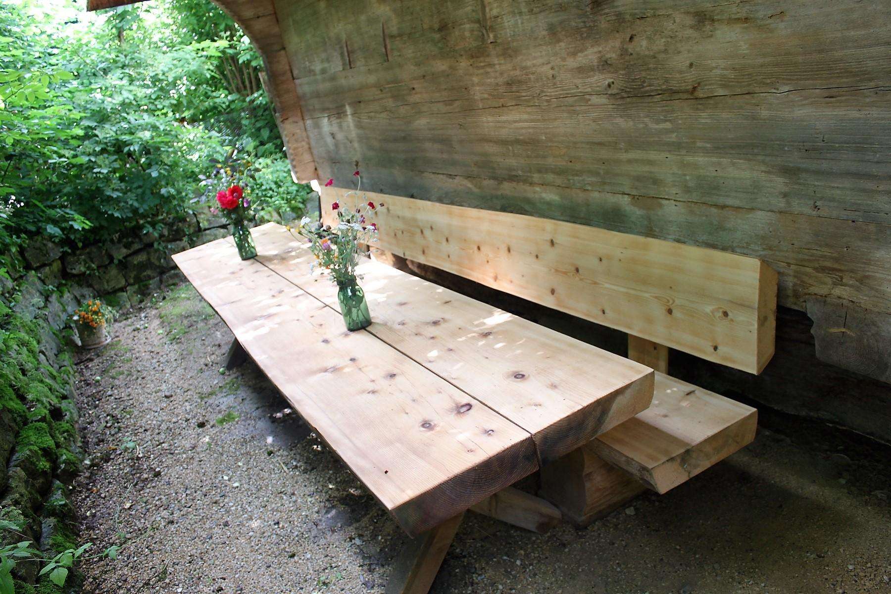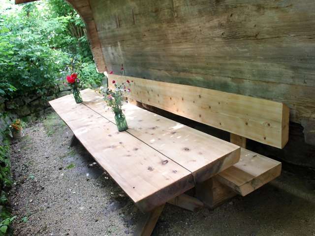 Das idyllische Plätzchen hinter dem Spycher lädt zum Verweilen ein. An dem grossen Holzstich kann die selbst zubereitete Mahlzeit genossen werden und dabei mit Glück noch das Zirpen der Grillen und das Vogelgezwitscher belauscht werden. Das aussergewöhnliche am Spycher ist das Mühlebächli, welches unter dem Spycher hindurchfliesst. Das leiste Plätschern des Baches lädt zum Geniessen und Verweilen in der Natur ein.