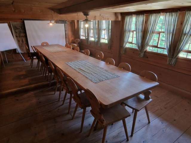 Der Gaden stellen wir gerne ohne Aufpreis zum Picknicken zur Verfügung. Der Raum befindet sich im historischen Stöckli im 1. OG und ist nur über eine Treppe erreichbar. Platz haben rund 20 Personen.