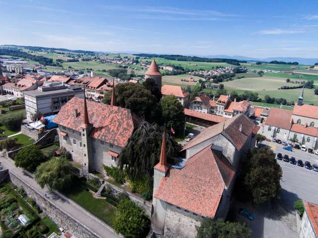 Der lauschige Schlosshof lädt zu einer Pause ein, während ein Blick über die Festungsmauern die Weite des Landes und die Alpenketten sichtbar werden lässt. Die Stiftskirche ist ein herausragendes Zeugnis gotischer Baukunst im Kanton Fribourg, und ein Gang durch die Gassen der Altstadt lässt den Besucher das intakte Ortsbild geniessen.