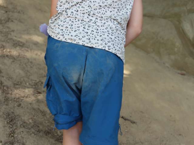 Ganz zuunterst gibt es noch eine Besonderheit: Die Mausefalle. Dort werden keine kleinen Nagetiere gefangen; dafür verschwinden die Murmeln in einem Loch und tauchen in der handgrossen Höhle darunter wieder auf. Ebenso fasziniert sind Vera und Nino allerdings von der steilen Naturrutsche neben der Murmelbahn. Dort kann man klettern! Dabei bleibt keine Hose sauber.