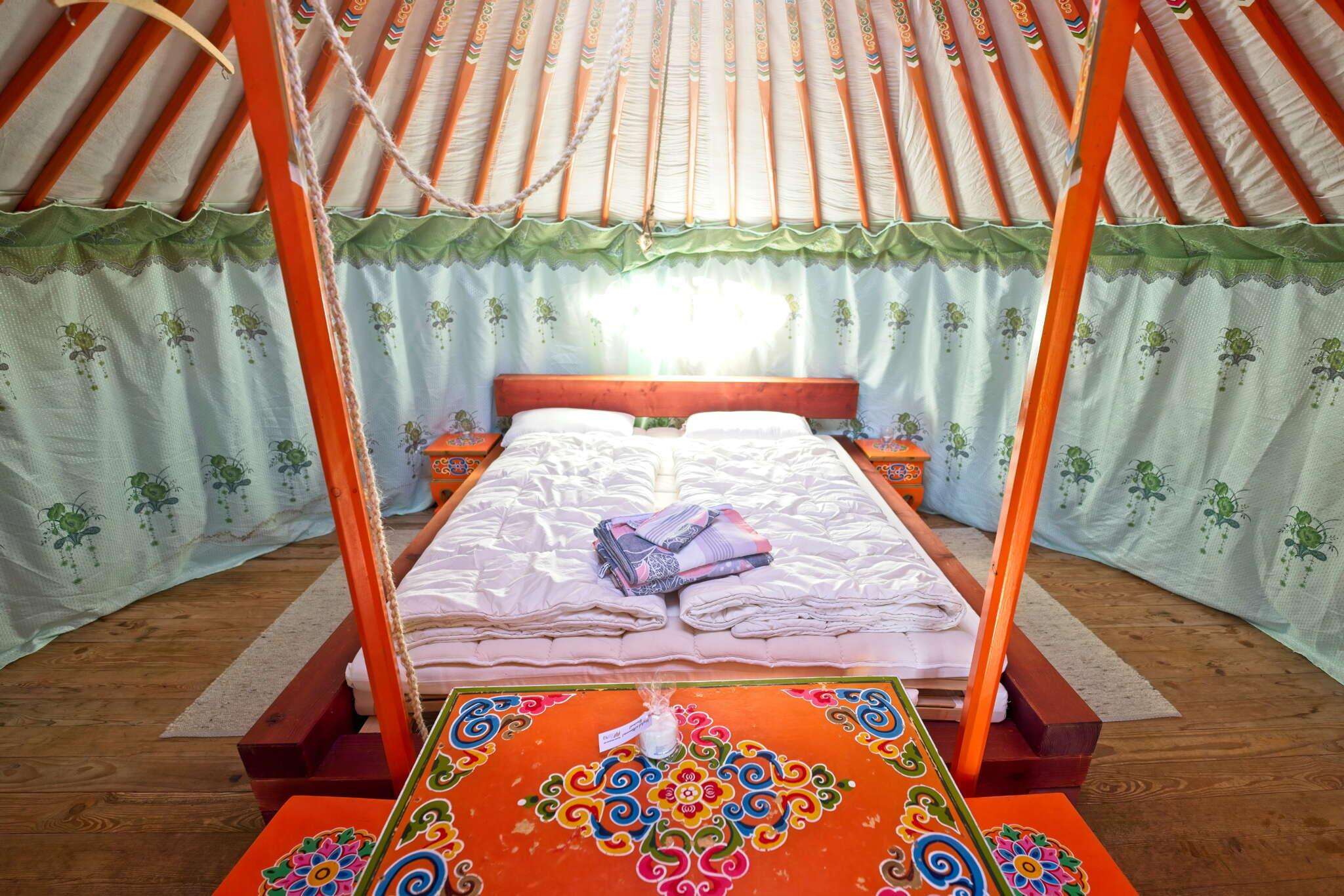 Übernachten Sie in einer unserer originalmongolischen Jurten (April - Oktober).
