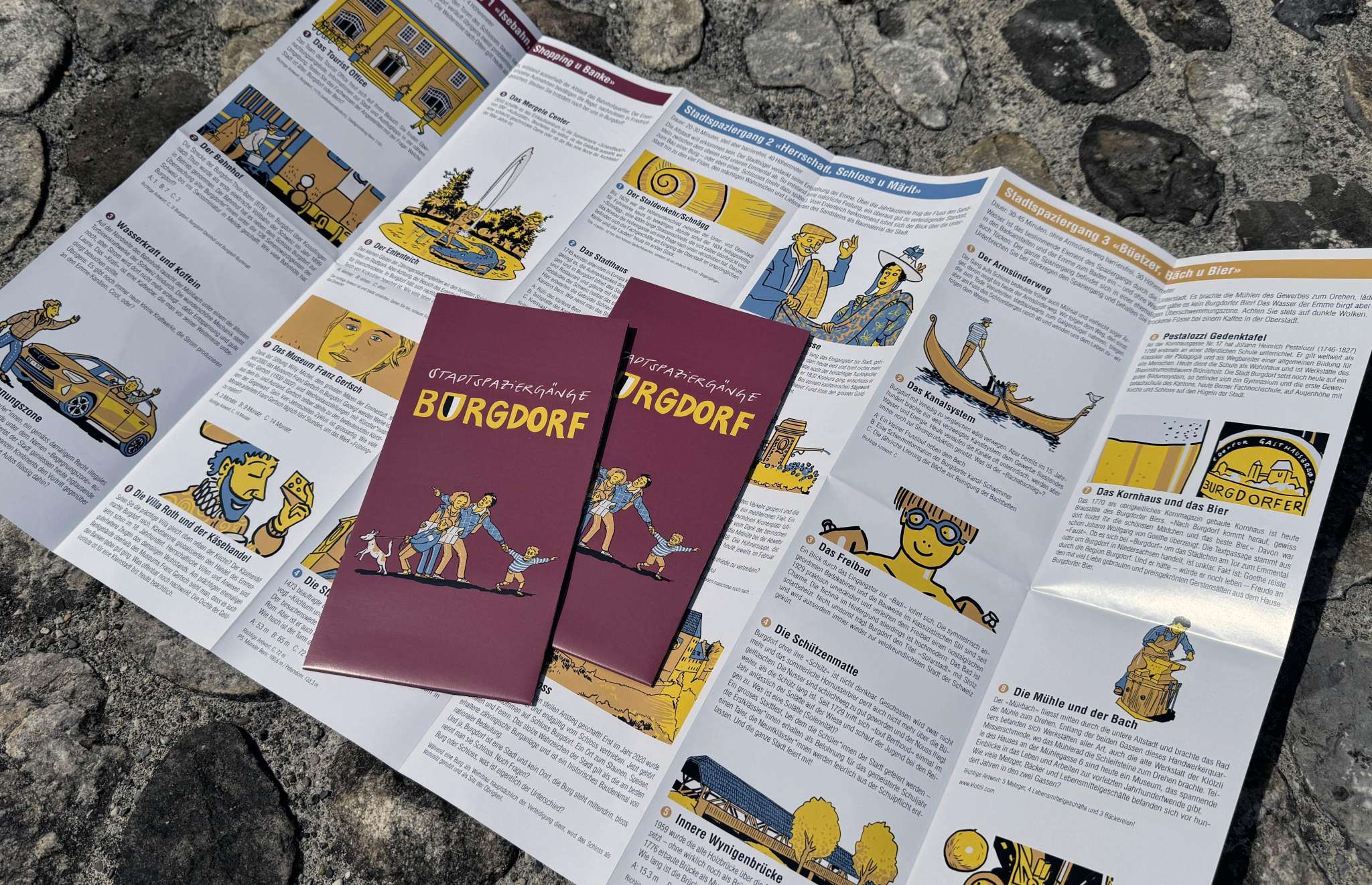 Die Broschüre zu den Spaziergängen können jederzeit in gedruckter Form bei Tourist Office abgeholt werden. Zudem liegt sie  bei den Mitglieder von Pro Burgdorf auf. Die Broschüre kann auch im Vorfeld beim Tourist Office bestellt werden.