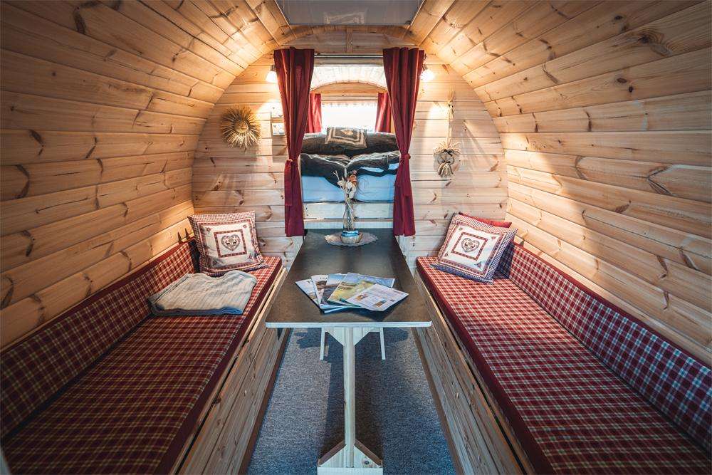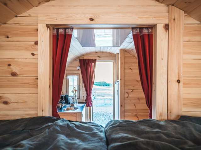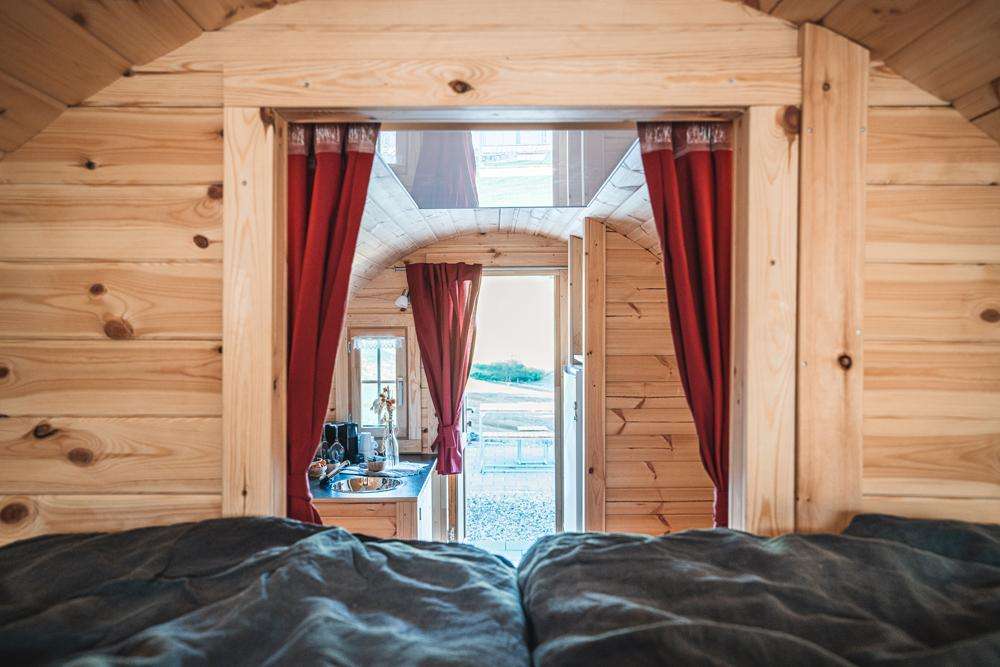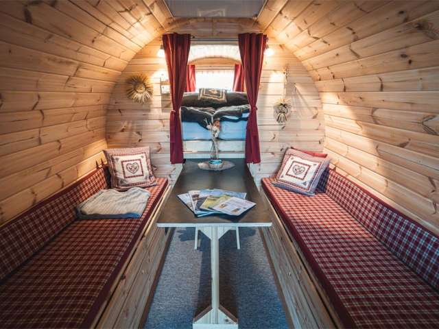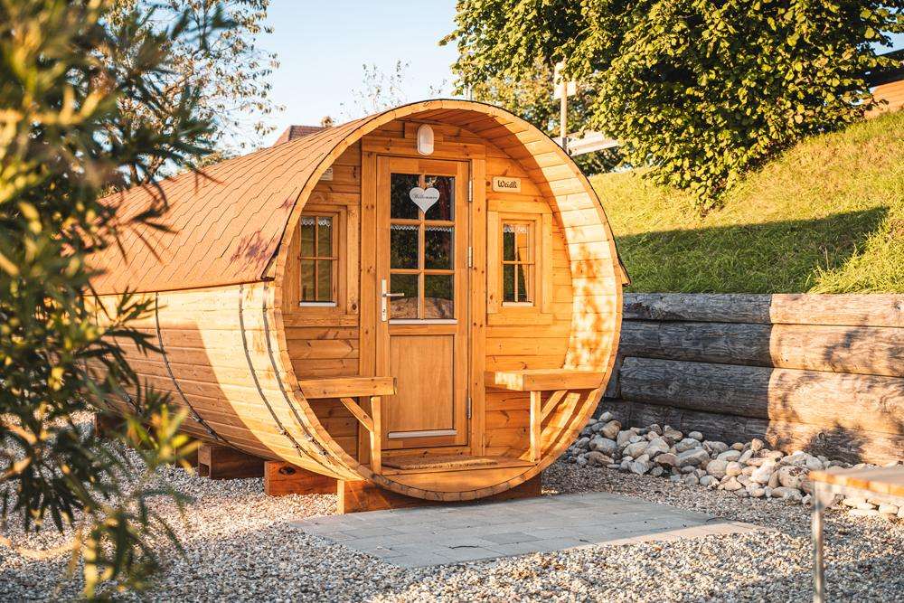 Übernachten Sie im heimeligen Wohnfass mit Traumaussicht.