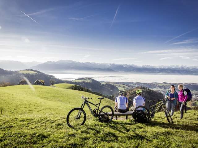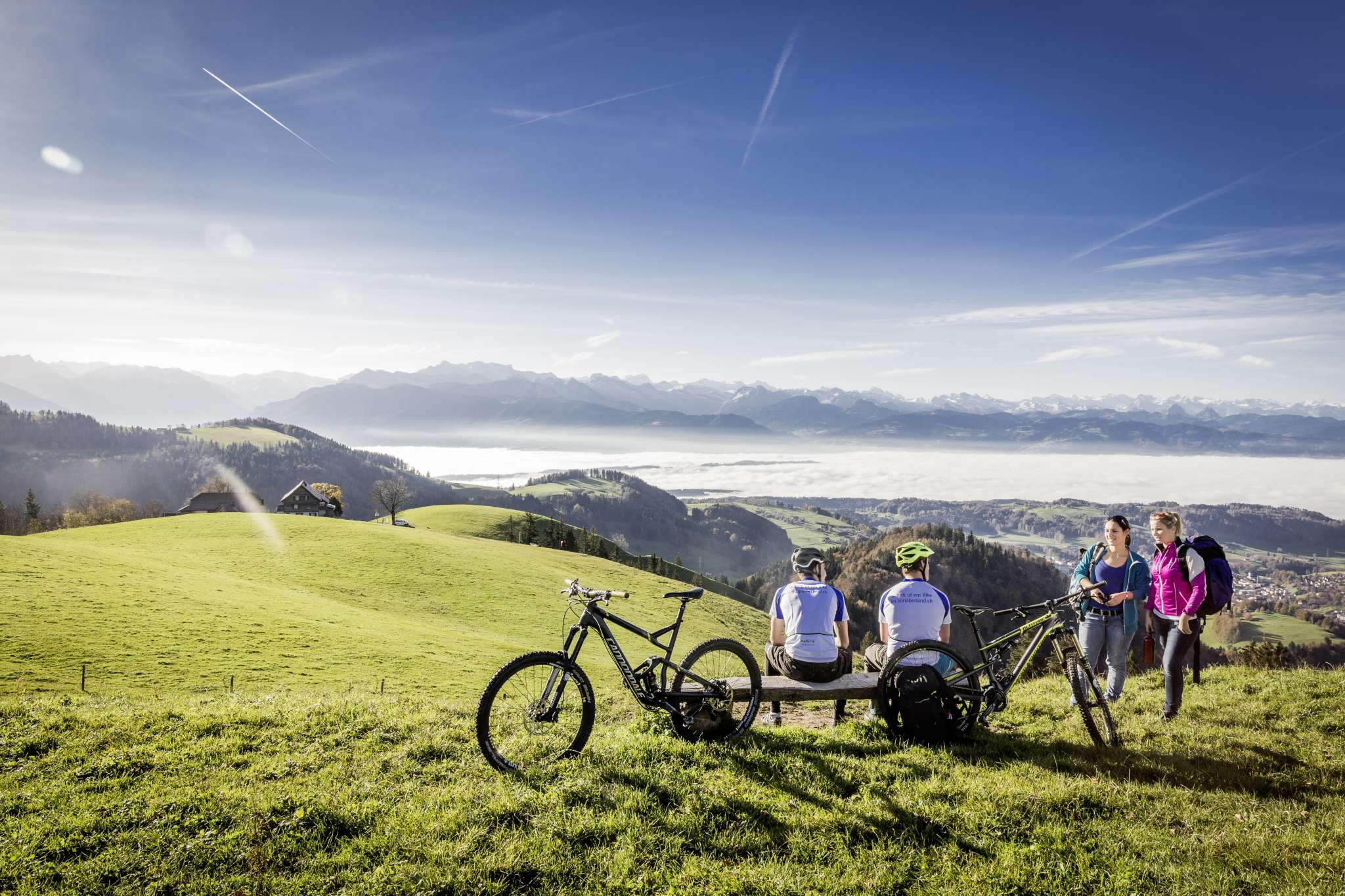 18 Gipfel ragen über 1'000 m ü. M. in die Höhe und garantieren weite Panorama- blicke. Die Vielfalt der Landschaft mit ihren bewaldeten Bergen, den wildromantischen Tobeln und den weiten Seen- und Drumlinlandschaften lassen die Wander- und (E-)Bikerherzen höher schlagen.